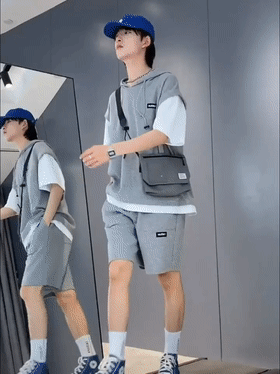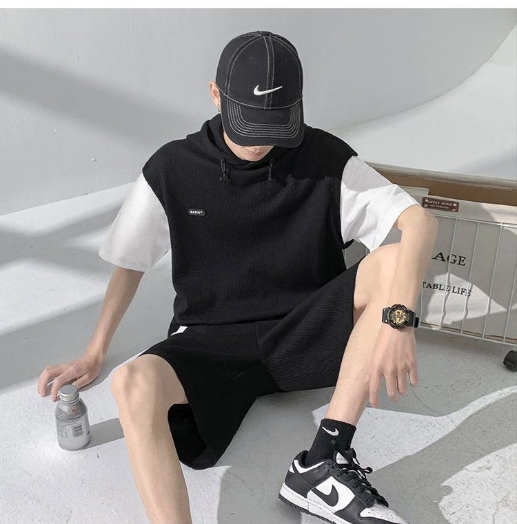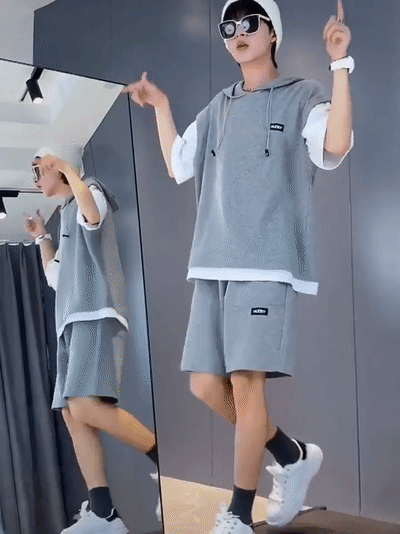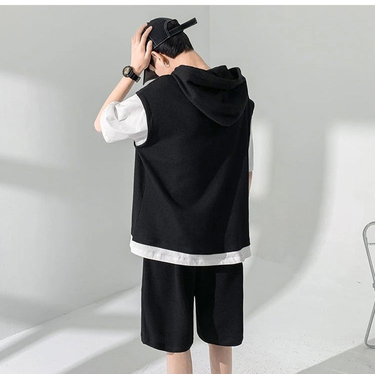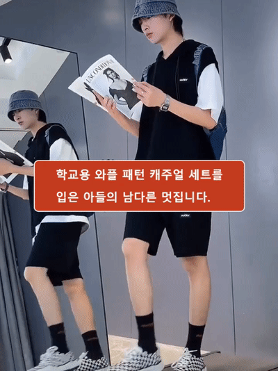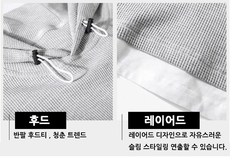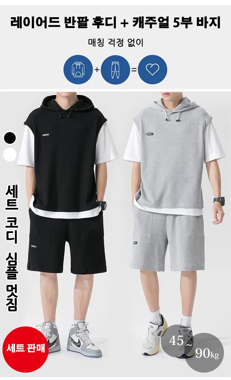 시원한 남자 레이어드 와플 패턴 캐주얼 세트